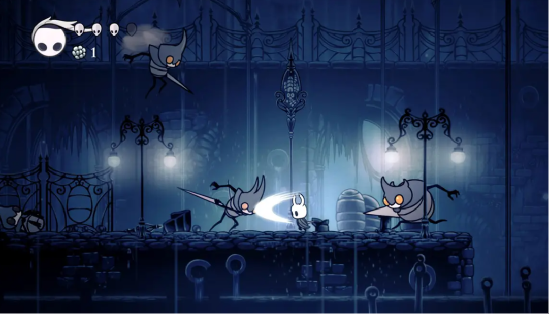 One of Hollow Knight’s greatest achievements is its atmosphere. The hand-drawn art style, combined with layered backgrounds that add depth, builds a melancholic and captivating world. Hallownest feels ancient, abandoned, and full of history, even when not a single word is spoken.