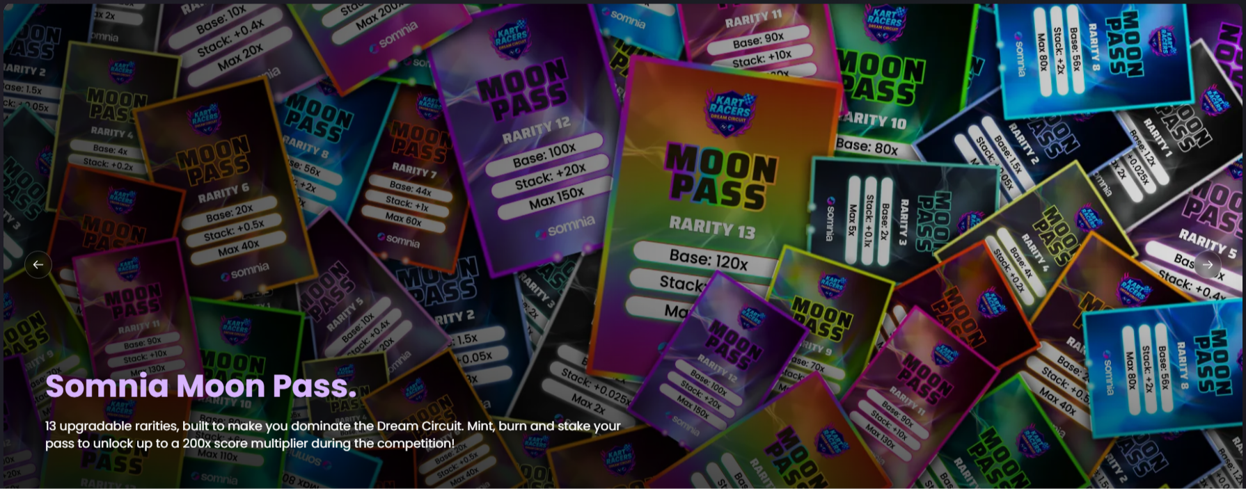 A notable example is the Somnia Pass, also known as the Moon Pass. This NFT offers progressive benefits based on its rarity and can be staked, burned, or traded within the platform. Its main purpose is to enhance tournament performance and expand earning opportunities.