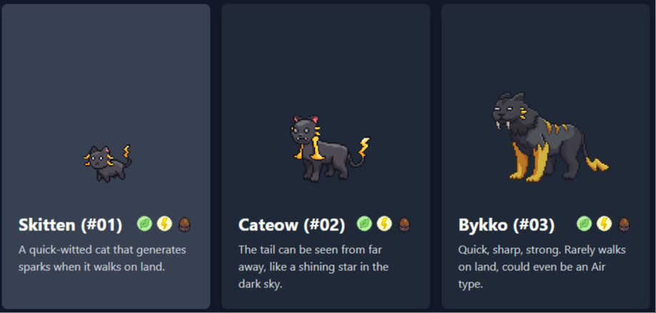 Mons evolve through three mutation stages, influenced by items, morality, or location. Breeding allows the inheritance of stats or traits, while advanced players can build and decorate their own NFT apartments or unlock cosmetics through the Stellar Pass.