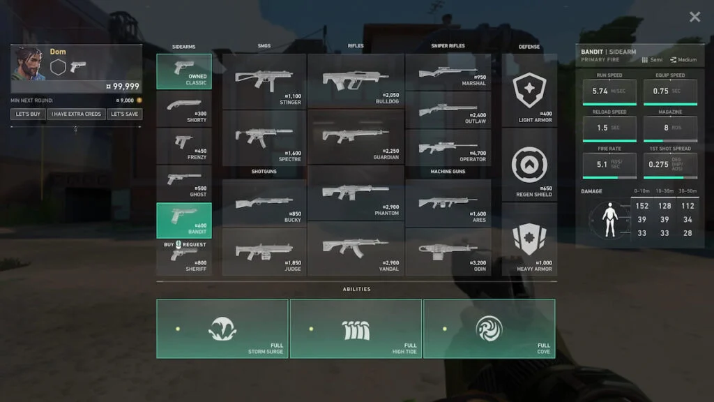 Unlike the Ghost, the Bandit can eliminate an enemy with light shields in a single headshot, even at long range. At the same time, it is more affordable than the Sheriff, making it a middle-ground option designed to keep pressure during economic rounds.