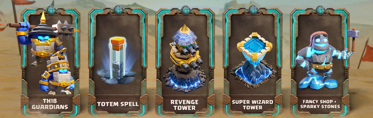 At TH18, Guardians completely replace the Town Hall’s weapon. Only one can be active at a time, and its role is to protect the central area of the village.