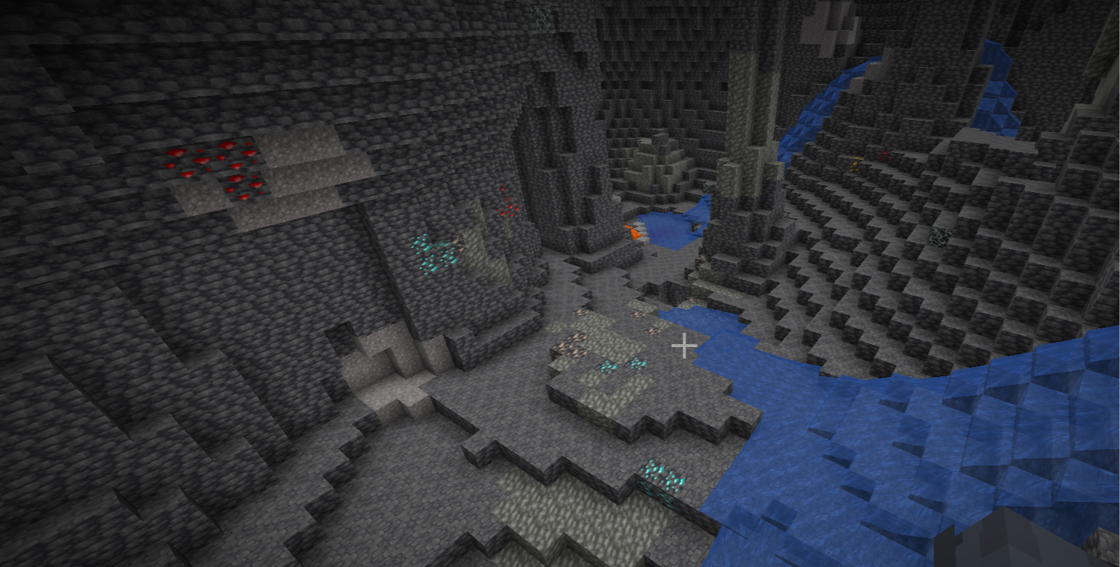 Aquifer-type caves and megacaves introduced in recent versions expose large surfaces of blocks. Although this is a fast way to spot diamonds, the game applies an "air exposure" penalty.