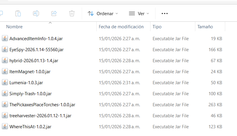 Mod files are placed in this folder, usually in .jar or .zip format. They should not be extracted unless the mod developer explicitly indicates otherwise, as is the case with local language translations.