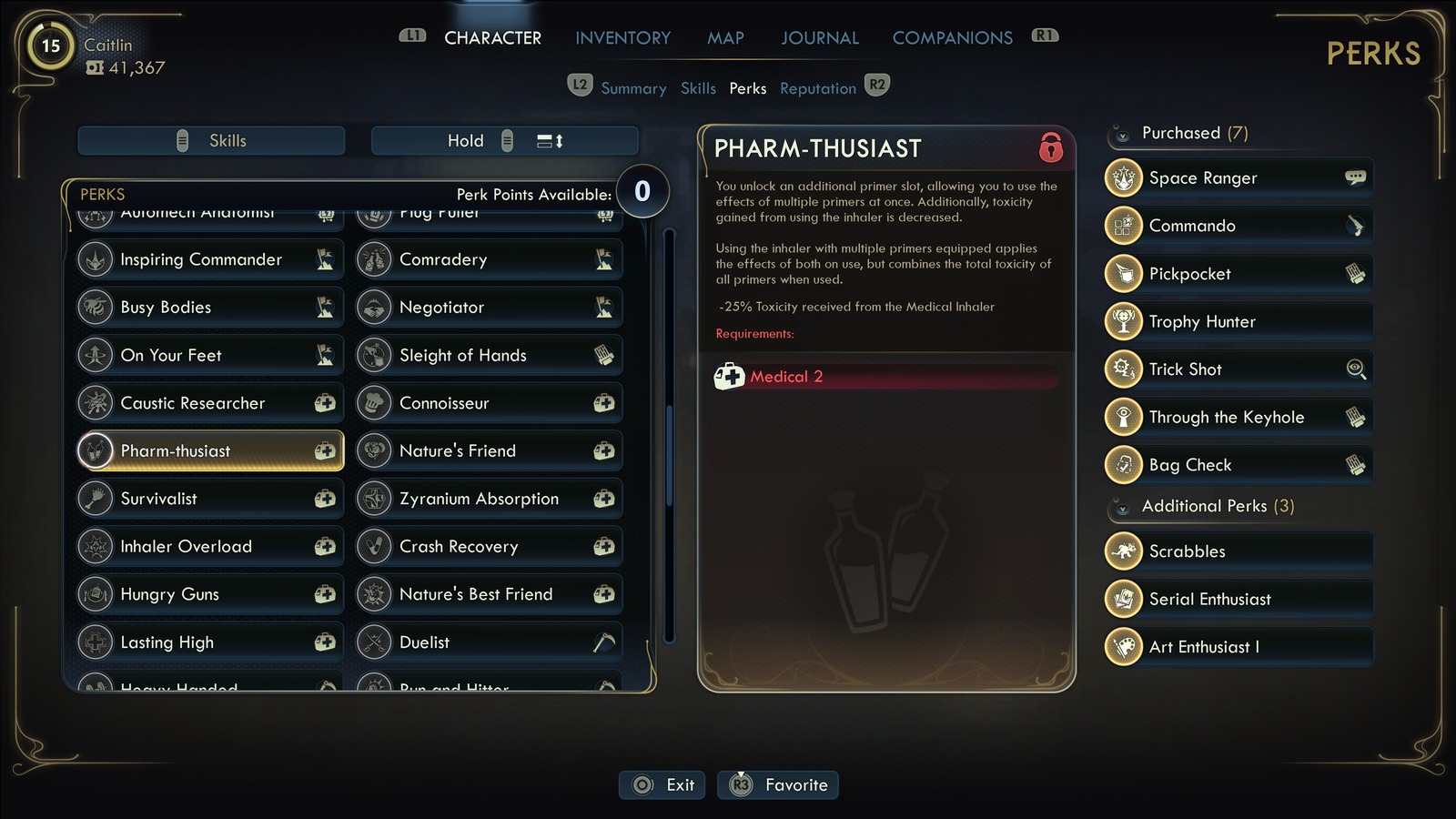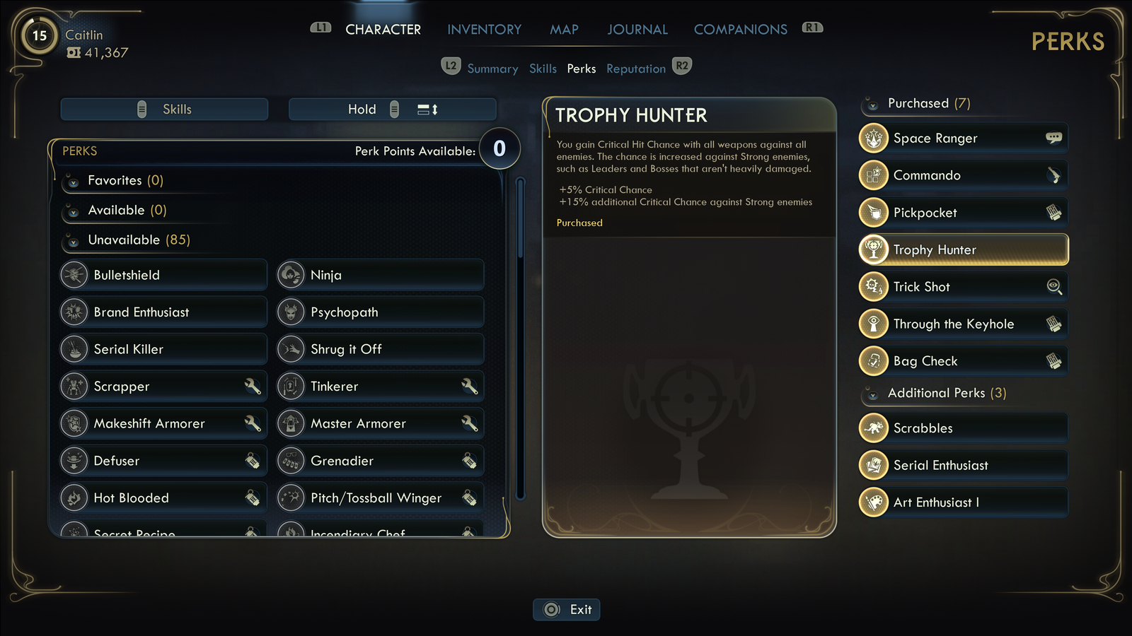 the outer worlds 2perksmejores perkssistema halcyoncombate directosigiloestrategiacommandotrophy hunterpickpocketshiny new toypitch/tossball hackerconnoisseurpharm-thusiastserial killerbuilds de juego
