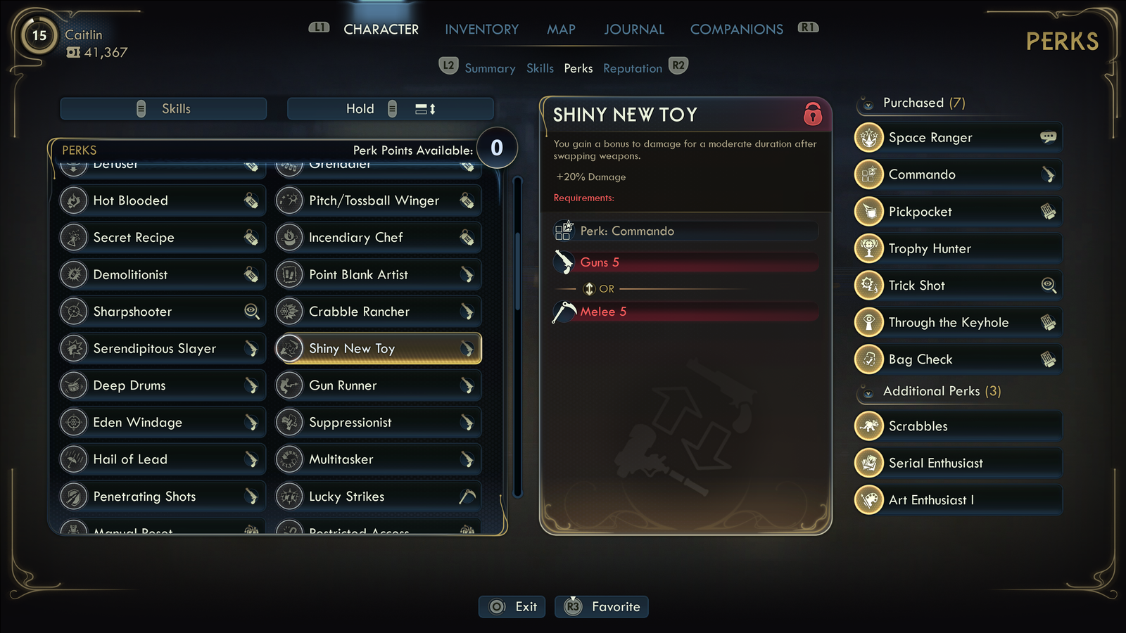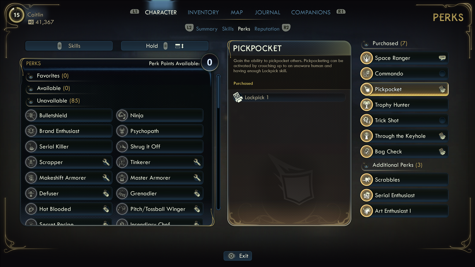 It all depends on your playstyle. If you prefer direct combat, Commando, Shiny New Toy, and Trophy Hunter are essential. For stealth or manipulation builds, Pickpocket and Restricted Access shine. And if you enjoy customization and crafting, Tinkerer and Makeshift Armorer give you an early edge.