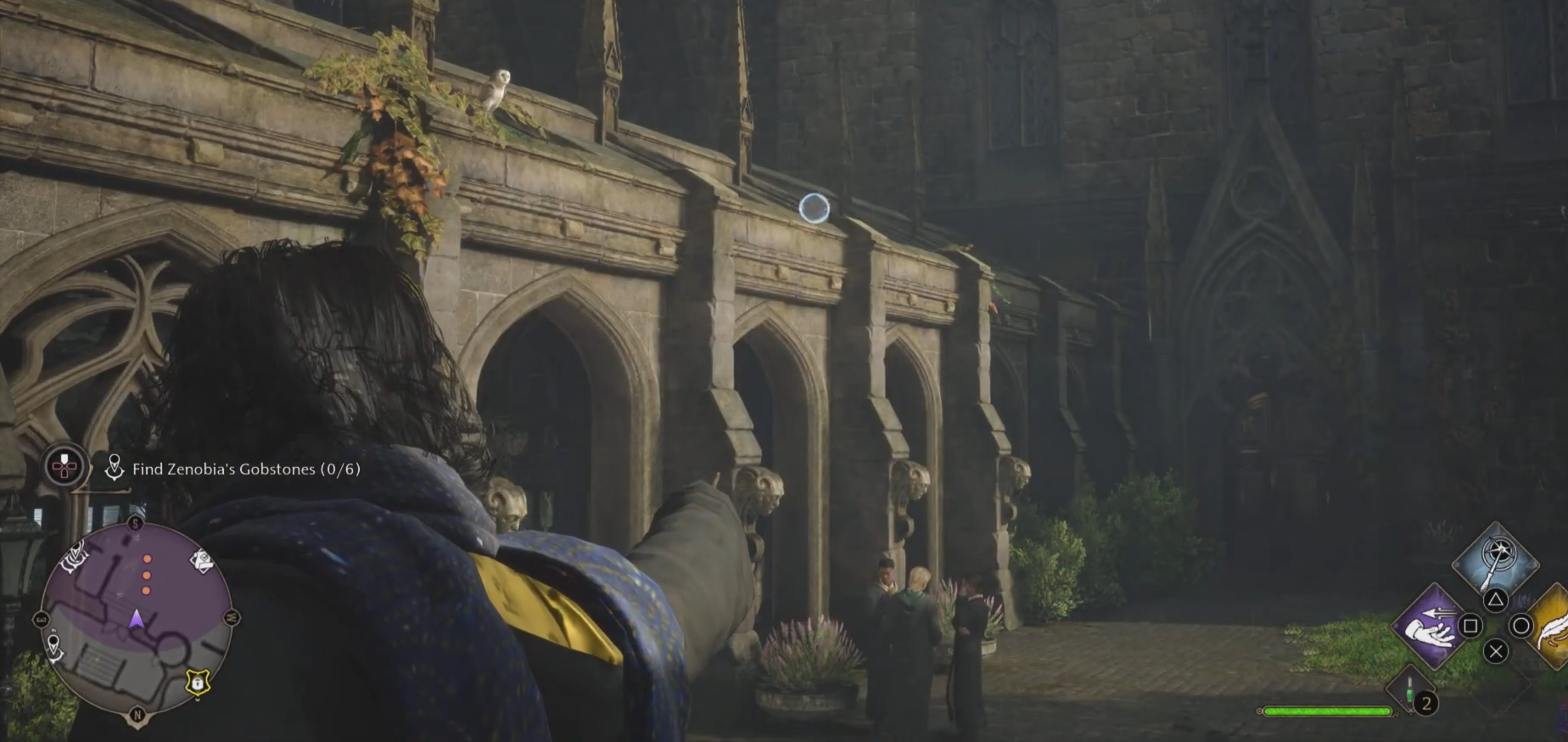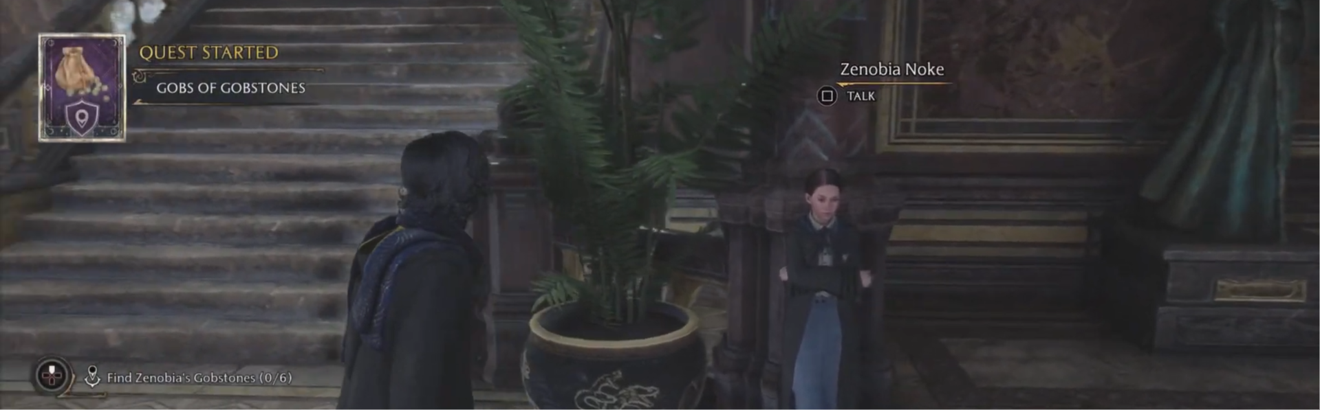 During the initial dialogue, the player agrees to help her recover the Gobstones that other students hid around the castle after losing to her in a game of Gobstones.