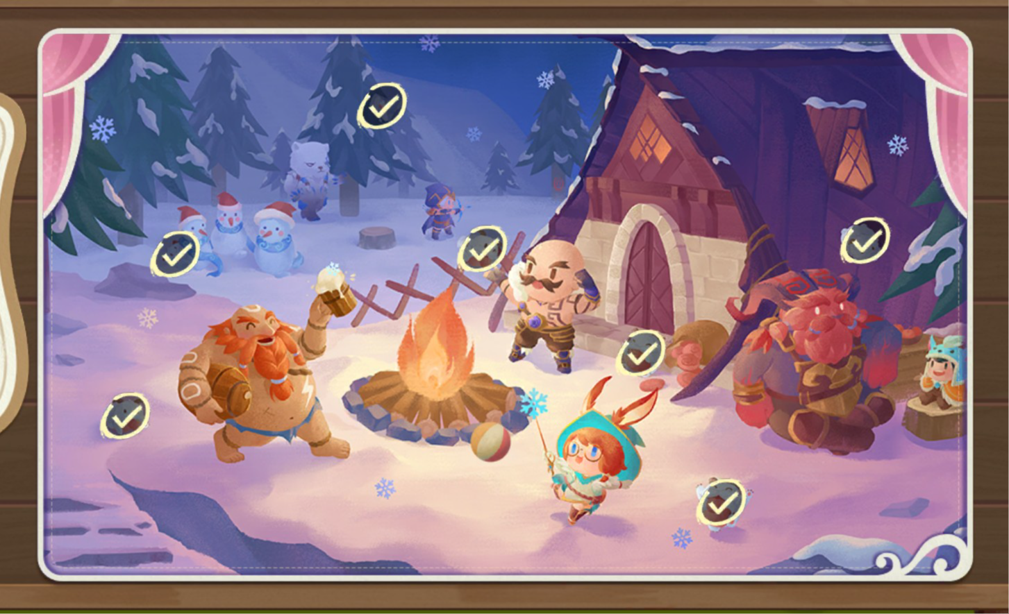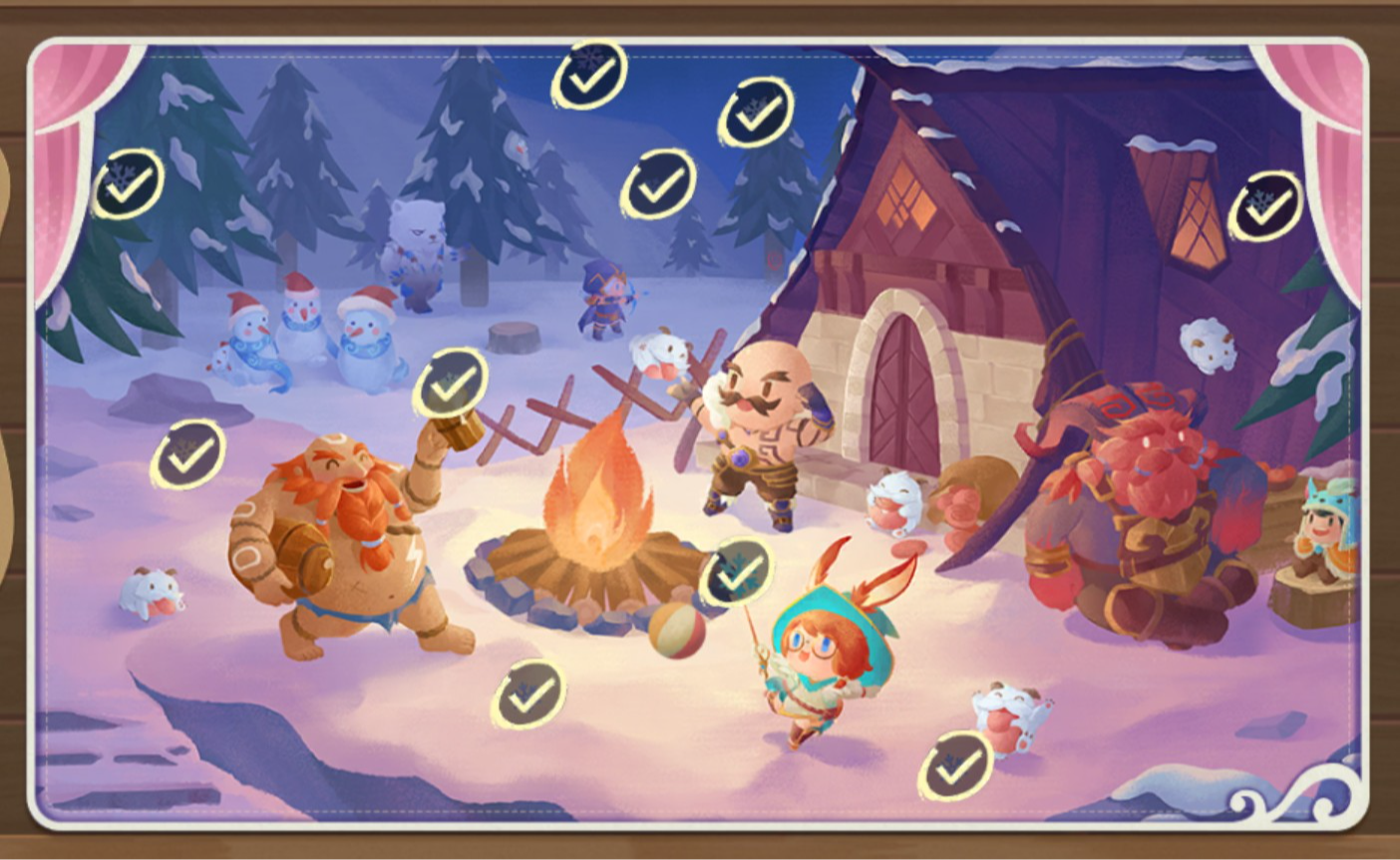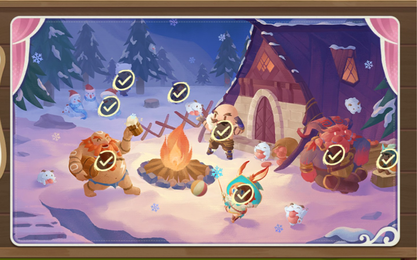 The challenge increases in difficulty. Now you must locate all the champions that are camouflaged among the snow and the different structures.