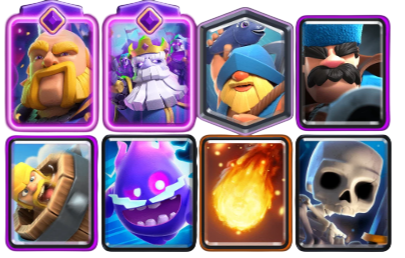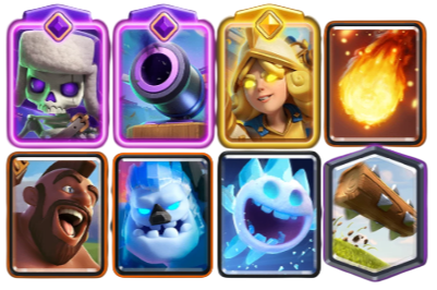 Este mazo se basa en la presión constante. La idea principal es atacar con Montapuercos + Espíritu de Hielo para forzar respuesta y luego volver a rotar rápido hasta tener otra oportunidad.