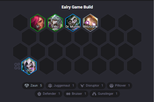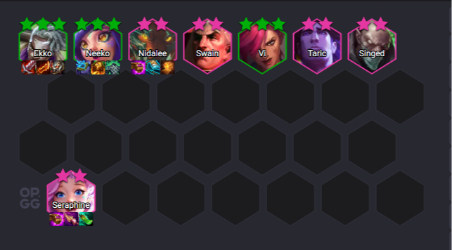This composition takes advantage of the recent Zaun buff, aiming to play with five units from this synergy. You don’t need every unit at 3 stars to stabilize; having them at 2 stars in the mid-game is enough to start winning. The main strategy is to reach level 6 and perform a heavy reroll to get Ekko, Neeko, and Vi to 3 stars.