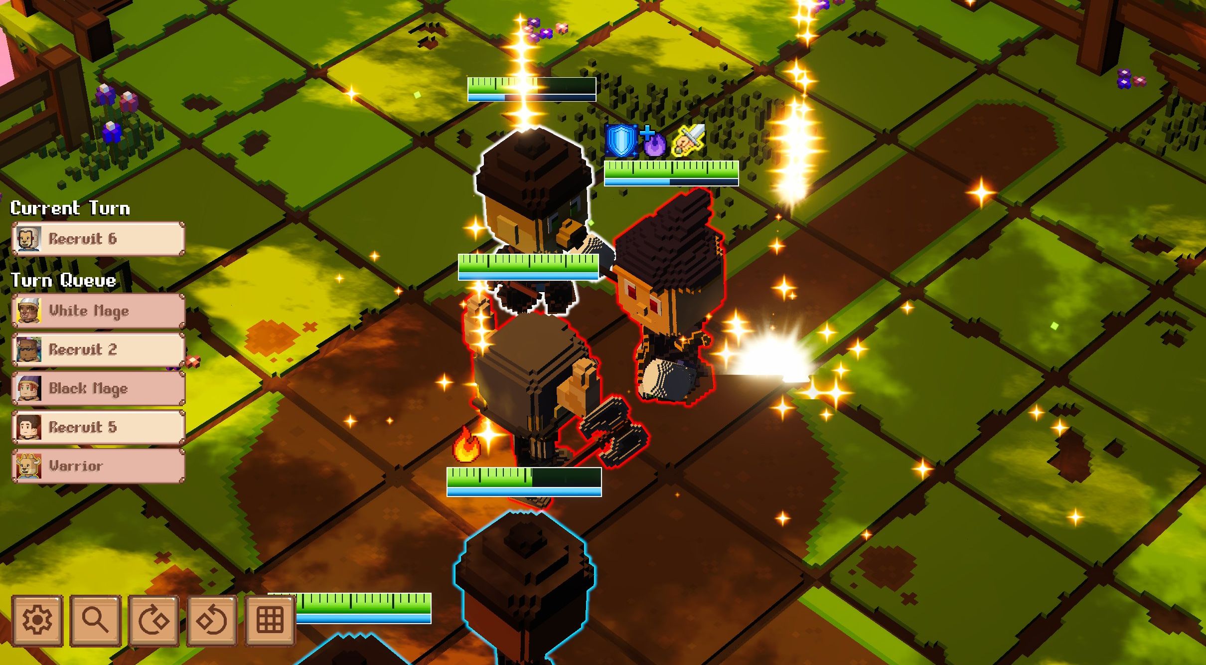 Voxie Tactics defines itself as a grid-based tactical RPG, with turn-based battles where strategy outweighs speed. Its voxel-based aesthetic reinforces a retro-modern look, but the gameplay stays rooted in classic tactical logic.